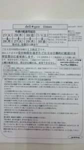 注文書に付ける案内文として、5年前から『deli★gen times』というものも送ってます。